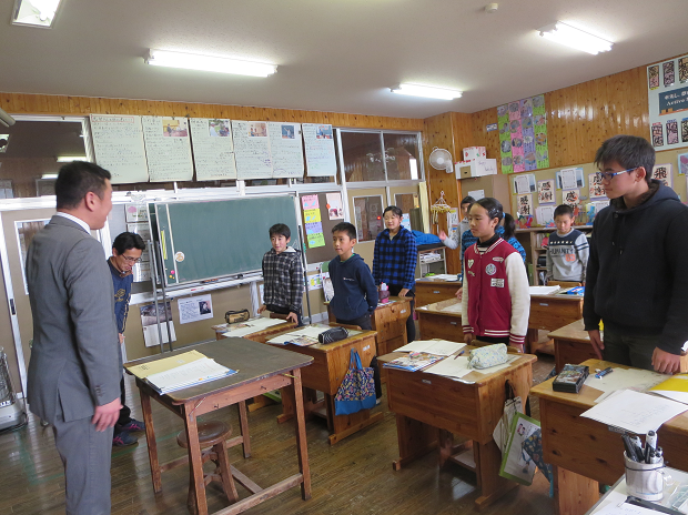 4時間目に5.6年教室で授業をしているのは町長さんです。
