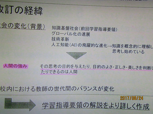 新学習指導要領の実施に向けた説明復講の時に、外国語科としての、授業内容もいろいろ変わる説明がありましたが、「慣れ親しむこと」「素地」が大事だとありました。