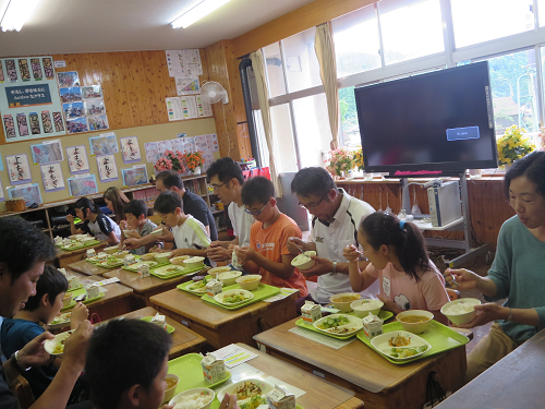 保護者の方が27名、児童委員さん1名が、子どもたちと一緒に給食を食べました。