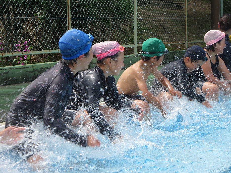 体育委員会の誓いの言葉や校長先生のお話、体育主任からのプールのきまりのお話があり、さぁプールへ