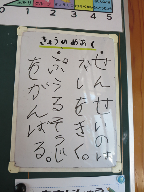 朝のボランティアの時、集会の時、部活動の時・・・全校での活動の時はいつも、お姉さんお兄さんの誰かが、遅めになる子に気を配ったり、会場の片付けや電気消しなど、後じまいまでしてくれています。