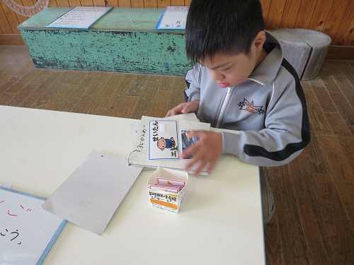 終わったとき、出来たとき、一日に何回も先生から「できたね!」「がんばったね。」の声かけをもらい、その度に、に~んまりうれしい顔をしています。(おいっ!!)