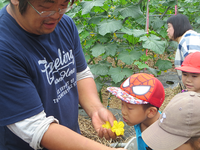 最後の質問タイムでは、「1日に何本とれるのですか?」とか、「どんなきゅうりをつくりたいですか?」の質問から、きゅうりをちぎる以外にするお仕事や、きゅうりの品種やサイズの種類 などまで、詳しい説明をしてくださいました。