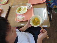 食べた後に教室に戻りながら「今日の日記 これ書こう!っと。」と。