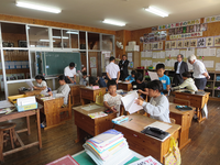 米すりをされているおじちゃんとおばちゃんたちに会ってさわらせてもらったり、畑仕事をされているかたに話しかけたり、牛の飼料を準備しているのを見たり・・・・行きも帰りもあっち寄りこっち寄りで、ギリギリ給食前に学校に戻りました。