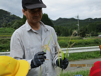 2種類の稲を見せながら、稲の病気のこと、今刈ったお米を育てるときのこと、そして大切にまもられている種のことを教えてくれました。