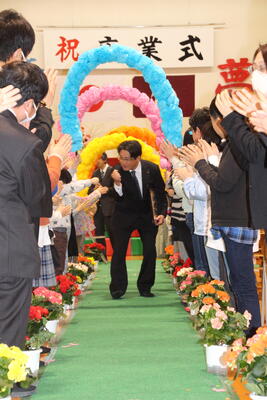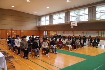 28日(木)は,退任式後,もう一つの卒業式が行われました。それは,35年間の教職生活を卒業される校長先生の卒業式でした。子どもたちによるエスコート,卒業証書授与,スライドショー,よびかけなどがサプライズで行われました。これまでお世話になった校長先生に心から喜んでもらおうと,子どもたちや先生方がそれぞれの役割をしっかり果たしていました。「この35年間いろいろなことがありましたが,今こうしてみんなを見ていたら,また先生になりたいなあと思いました」とおっしゃる校長先生の言葉から,「学校の先生」の本質を最後の最後まで見せていただくことができ,感動をたくさんいただきました。ありがとうございました。