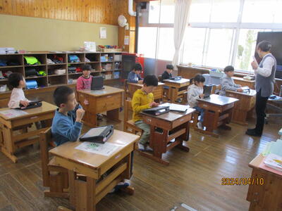 4月10日(水)晴れ。子どもたちは,元気に挨拶をして登校してきました。1年生も黄色い帽子をかぶって上級生と一緒に登校班で登校してきました。子どもたちの挨拶で地域も学校全体も元気をもらうことができます。とても素敵な朝の始まりです。登校後は,これまでの先輩方の取り組みを引き継ぎ,朝ランや大きな声でスピーチを行っていた中原っ子たち。教室でも落ち着いて学習に向かっていました。