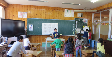 学校は広いけど、児童は少ないので、低学年もトイレ掃除を任されます。