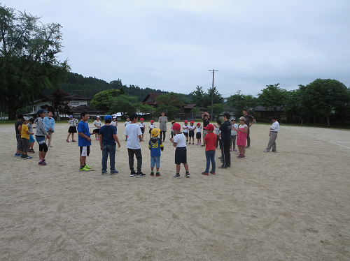 準備運動をしてから、ウォーミングアップで5分間走→ラダー→キャッチボール