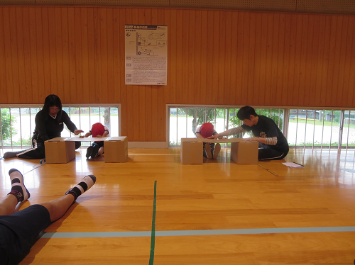 体育でしたスポーツテストのいくつかと、スキンシップしながらの項目をおうちの方と一緒に。