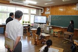 教材の写真を撮って「振り返り」に活かしたり、ミラーリングをして発表する等、タブレットを積極的に活用する子どもたちの姿に教育委員会の先生方は感心しておられました。複式授業で学習リーダーを中心に、学び合いができていることも評価していただきました。また、本校の授業研究について「今後も継続して取り組んでほしい」との力強いお言葉をいただきました。「自分の住む地域に誇りを持ち、社会の中で自分の力を発揮できる子ども」「課題解決への道筋を自分で見つけ、成長することができる子ども」の育成を目指して、日々の研鑽を続けていきます。
