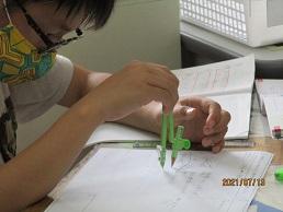 7月13日(火)には5・6年生の算数で研究授業を行いました。5年生は、「三角形の4つの角の大きさの和が何度になるか、説明しよう」という課題に取り組みました。三角形の内角の和は180°になることを学んでおり、対角線を用いて三角形をつくることで課題を解決しようとする内容でした。子どもたちは1本なのか、2本なのかで試行錯誤していました。終末では、「五角形や六角形についても調べてみたい」と振り返っていました。6年生は、「地図を使って、実際の道のりや距離を求めよう」という課題に取り組みました。地図で道のりや距離を測り、比の関係を用いて課題を解決しようとする内容でした。終末では、「学んだことを生活に活かしたい」と振り返っていました。また、担任が交互に指導を行います。担任が他の学年を指導しているとき、学習リーダーが学習活動を進めます。5・6年生ともに積極的に学習をリードして、一生懸命に取り組んでいました。