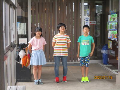 夕方の町内放送で,子どもたちの声が聞こえているのではないでしょうか。夏休み前に,中原小の放送委員会の6年生3名(鞭馬さん,宮﨑さん,古賀さん)が,町役場の放送室へ出向いて録音をしたものです。役割分担をして,本番に臨んでいました。この日は,みなみチャンネル(町のケーブルテレビ)と町の広報紙の取材もあり,ちょっぴり緊張気味の子どもたちでした。