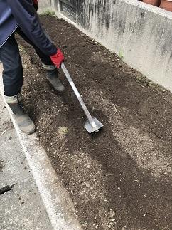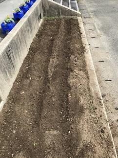 先日(5月25日)、やっと実施できた「みどりの少年団結団式」ですが、併せて花壇の草取りも行いました。そして、今日(6月2日)いよいよ苗を植えるための準備として、教頭先生に花壇を耕していただきました。