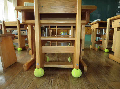 オルガンで校歌練習する音が聞こえたので教室へ行ってみたら、その近くでキュッとくっついて、机の下で本を読んでいる子を見つけました。