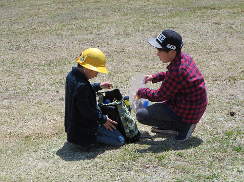 と、収穫いっぱいの報告と、ひろってきたゴミを袋に持って帰ってきました。