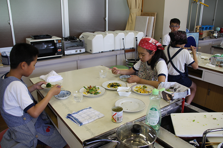 家庭科で、5年生「サラダ」6年生「朝食のいためもの」を