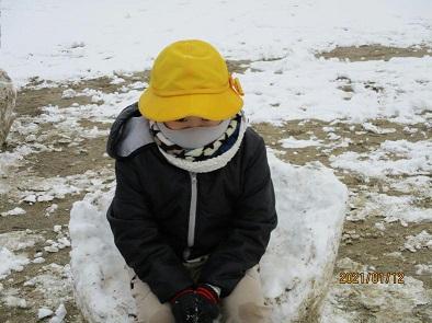 やっぱり、作るのは雪だるま(ちょっとペッパー味かな?)。かわいい顔になりました!