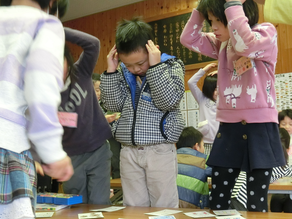 1・2年教室に、中原保育園の年長さん5名をお招きしました。