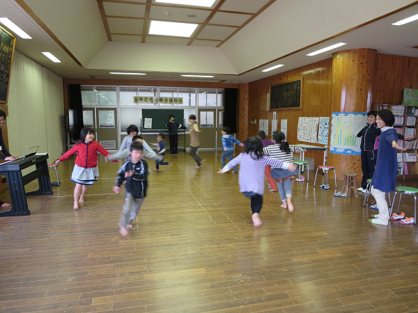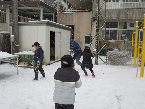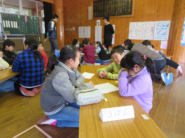 季節があっち行ったり、こっちに行ったり。外は雪が舞いましたが、1.2年生教室は、ぽっかぽかでした。
