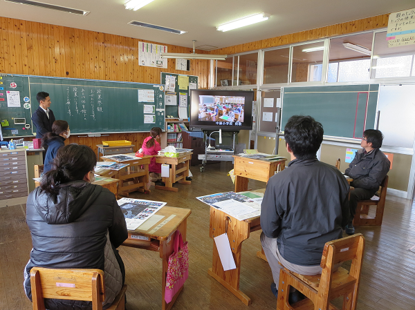 学級懇談では、日常の授業(歌やリコーダー演奏など)も録画していて、見ていただきました。