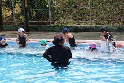 終わってみると,「最初はもぐれなかったけど,できるようになりました。」「プールでもぐったのが楽しかったです。」「プールで浮かびました。」「顔をいっぱいつけました。」など,子どもたちはそれぞれに感想をもつことができました。