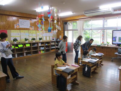 9日(日)は,中原小恒例の日曜学校が行われました。日曜日に参観日を設けることで,保護者の参加をしやすいものとし,子どもたちと共に活動したり学んだりすることを目的としています。今年度も,保護者の方々はもとより,弟・妹,中学生など多くの方々にも参加してもらうことができました。公開授業では,我が子だけでなく他の学級の授業もご参観くださいました。また,SNS等親子研修会では,小国警察署の方々にご来校いただき,スマホの利便性とその陰に潜む危険性について講話をしていただきました。特に家庭でのルールづくりなど,子どもたちの命を守るために,各家庭で話し合っていただきたいと思います。その後,小雨の中,ふれあい作業が実施され,校舎内外,たいへんきれいになりました。PTA数は少ないですが,多くのご協力をいただき,スムーズに作業を進めることができました。保護者の皆様の前向きな姿が,子どもたちの豊かな心の源になっているなとつくづく感じます。お忙しい中,本当にありがとうございました。