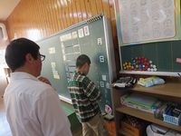 いつもは担任の先生と支援の先生が1つの教室(複式学級)にはいますが、もうひとりの支援の先生も授業の組み合わせによっては入って、3人で教えることもあります。