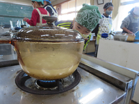ごはんを炊いて、おみそ汁を作る五年生と、自分で考えたおかずメニューを作る六年生でした。