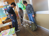3年生ははじめて。グランドゴルフのルールや、こうやって打つんだよ と教えてもらったり、