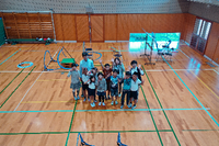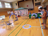 そのあと、低・中・高学年に分かれて、体育館でひとりずつコントローラーの操縦する2つのコースと、もうひとつは、チーム対戦のタイプも体験させてもらいました。(毎年 新しくなります!)