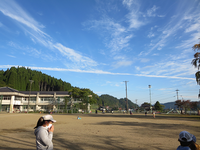1年生は国語の勉強で、ドローンで撮影してくださった映像を見て、くじらぐもにのっていました。