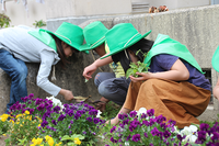 今年も、中原の南小国町社会教育委員さんがその種をお家で育てた苗をいただきましたので、6月の第1週に1年生と2年生が植えました。