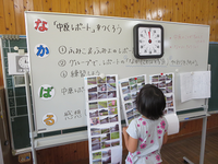事前学習として前の週には、どんなことをするのかを、前年度の写真とわかりやすいイラストで説明し、気持ちの準備と、自分が担当する係の練習もしました。