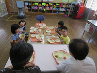 いつもと違って流れる時間は楽しいだけでなく、先生たちにとっても子どもたちにとっても、お互いの事をよく知ることができたり、給食を食べるマナーなど、普段と違う声かけをしてもらったりもありました。