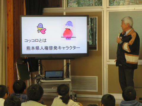 コッコロちゃんの絵を見せて、人権の意味や12月の行事のことをお話ししてくれました。