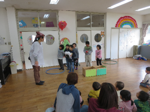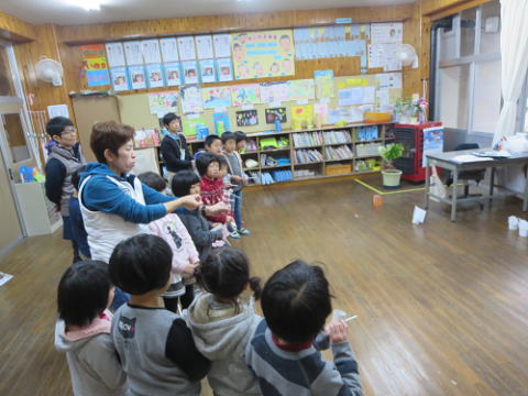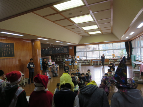 11月29日(木)生活集会の後。ぷくぷくの前は、いつものように図書の先生から本の紹介がありました。