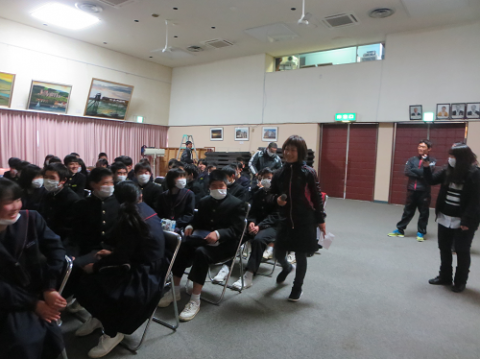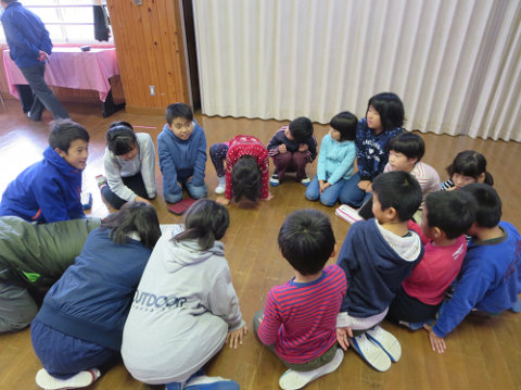 発表内容は、5.6年生がぎんなん祭で中原の方に観ていただいた劇「想いをつなぐ」を、全学年バージョンにして。今度は南小国町のみなさんに観ていただきます。