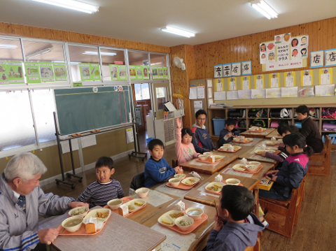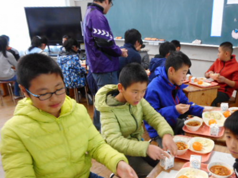 中原小は給食センターから離れていますが、子どもたちは食べながら