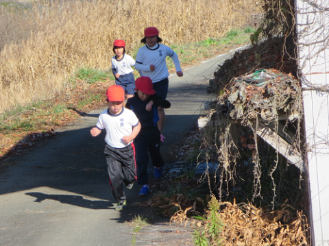 昨年は雪の中でしたが、今年はぽかぽかの中で持久走大会がありました。