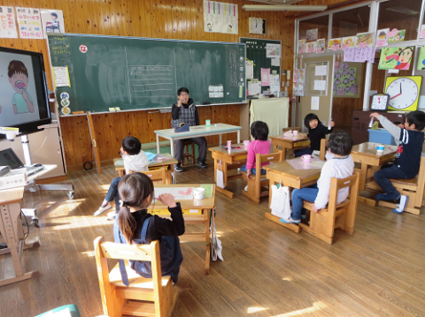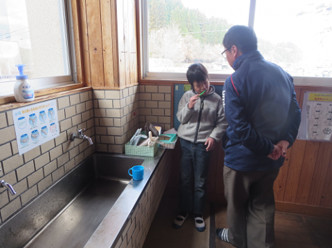 1年生は入学して毎日、かがやきさんも毎日、給食後に順番磨きをしました。