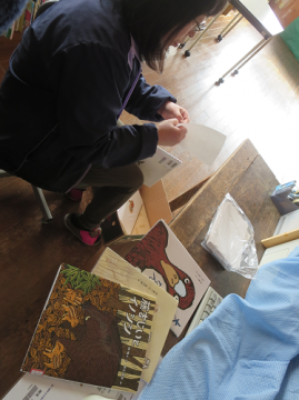 その後、わくわくの先生が作った絵本を見せてもらって、今日は自分の絵本をつくりはじめました。