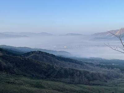 今朝,自宅を出て阿蘇谷を運転していると白い霧が立ちこめていました。
