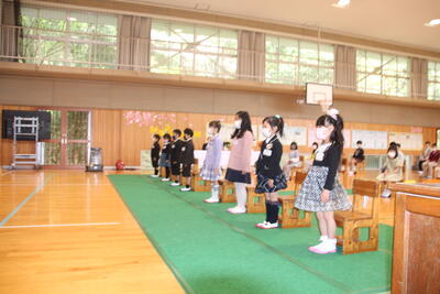 どことなくはにかみながら入場してくる子,照れくさそうに入場してくる子,元気いっぱい腕を振って入場してくる子…等々…それぞれの表情があり,8人ですがとても素敵な入学式になりそうな予感を感じさせる入場でした。(*^o^*)
