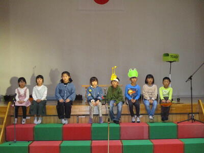 12日(日)のぎんなん祭でのステージ発表に向けて,子どもたちは,毎日の練習に励んでいます。それぞれに,長いセリフや多くの出番を日ごとに覚え,みんなで成功させようとがんばっています。先日9日(水)には,リハーサルを行い,もう少し練習したほうがいいところも見つかったようです。残りの日数で,最後の仕上げに取り組みます。