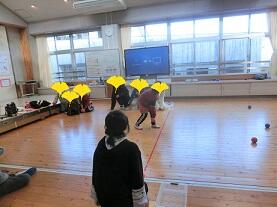 12月3日(金)午前中の持久走大会の後、午後からはPTAレクレーション、PTA全体会、学級懇談会が行われました。昨年は中止となったPTAレクレーション。何とか実施したいと考えておられた運営委員のPTA皆様の臨機応変な対応により、今年は実施することができました。保護者と児童、職員全員で楽しんだのは「ボッチャ(ジャックボールと呼ばれる白いボールを投げたあと、対戦する両者がそれぞれ赤と青の6球を投げ合い、自球をよりジャックに近づけたチームが勝者となる)」です。オリンピック・パラリンピック・イヤーということもあり、校内で何度も取り組んだ競技です。以前に掲載した関連記事も併せてご覧ください。経験を積んだ子どもたちはボールを的確にあてたり、戦略を考えたりするなど、とても上手でした。