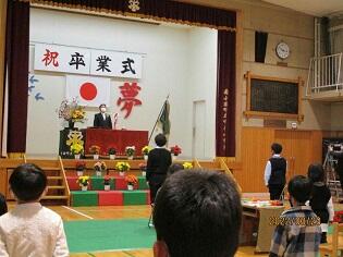 卒業式が始まる前から・・・始まっています。今日は、卒業式。朝から在校生は掃除をして、式場や教室をきれいにした後、もう一度、確認したり練習したりのリハーサルです。町の「南チャンネル」が取材に来られ、テレビカメラも準備完了です。今日の担当のカメラマンさんは、何と中原小学校の出身の方です。中原小学校の「校歌」を聞いて、校歌の歌詞を見つめながら「涙が出てきます」と懐かしそうに語られました。