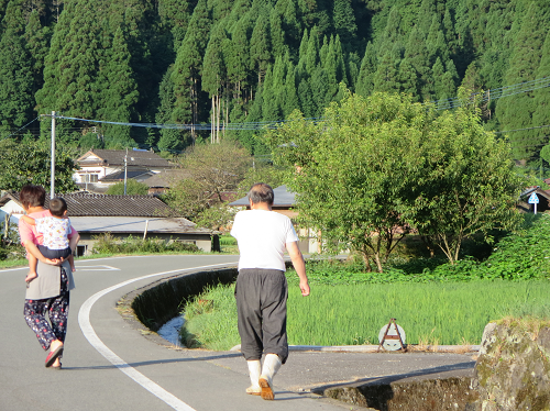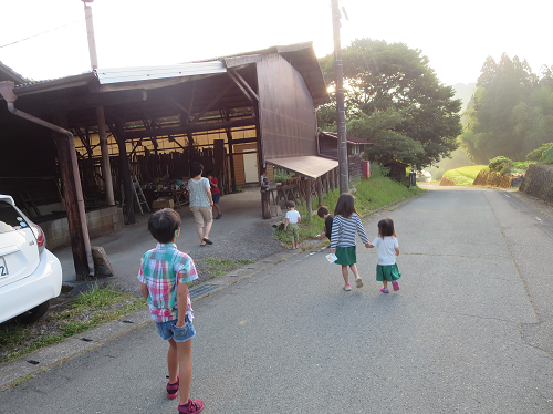 集まって、体操をして、もぐもぐしている間には、きゅうりの仕事を終えて家に戻るお父さんや、これから職場に出かけるお父さんにみんなで手をふったり、通るご近所の方にあいさつしたり手をふったり。