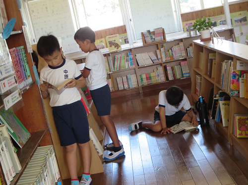 中原小の子どもたちは読書が大好きで、運動会の練習の休み時間も・・・